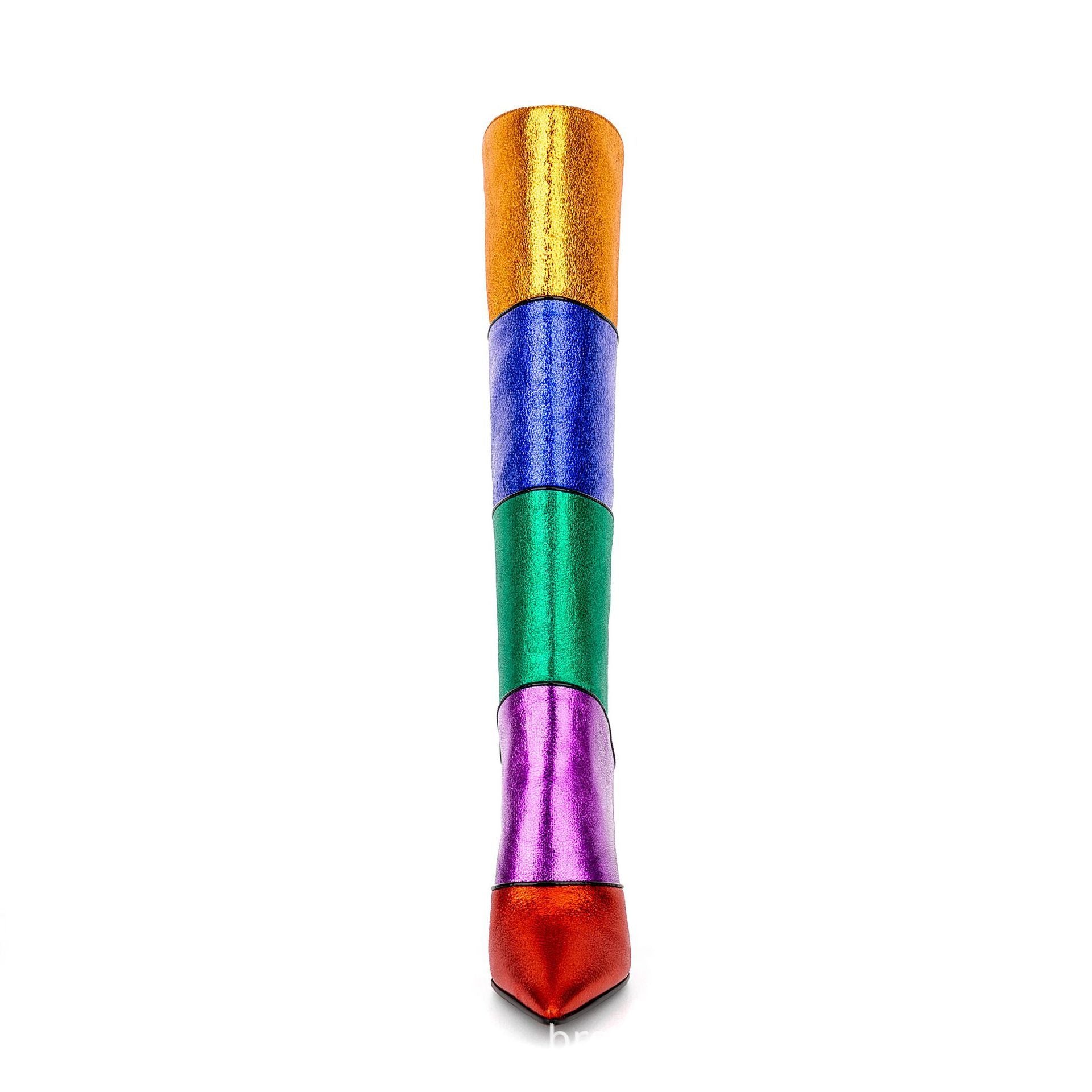 Tribal Card Metal Rainbow Color-blocking Pointed Chunky Heel Boots