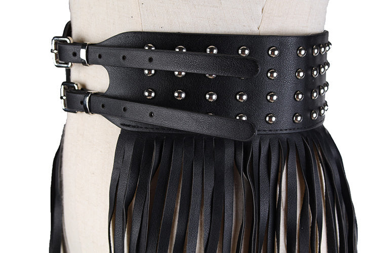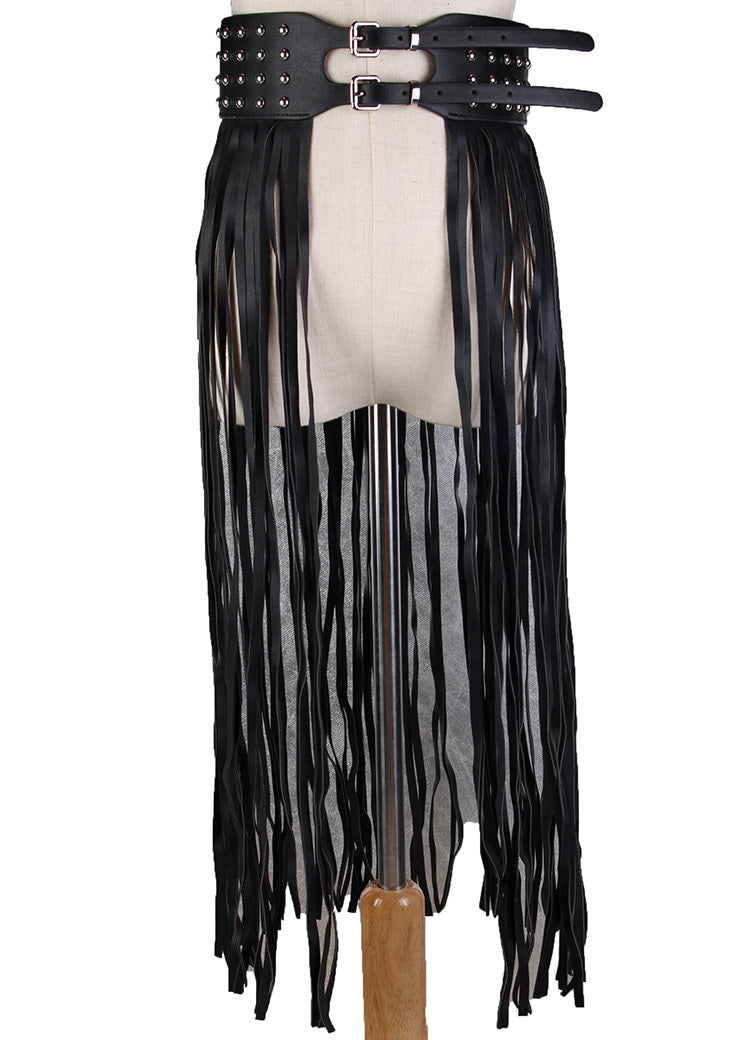 Black Fantastic Long Fringe Belt Leather Designer Belts