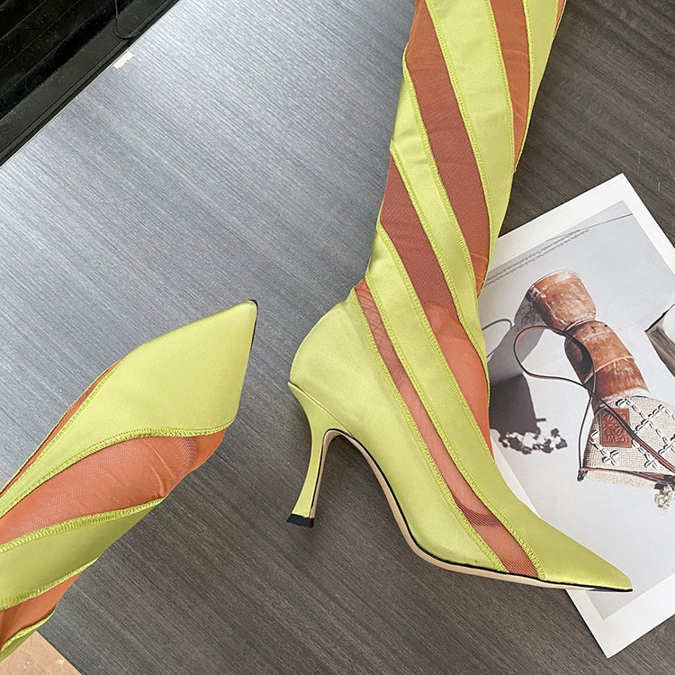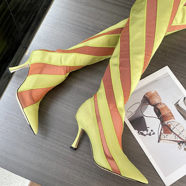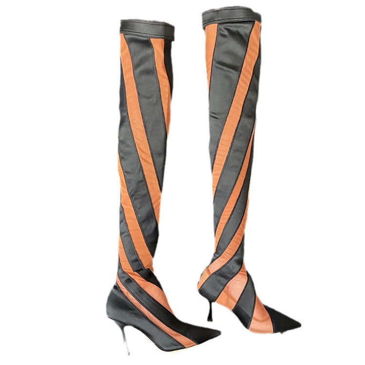 Elastic Thread Stitching Mesh Long Tube Over The Knee Boots
