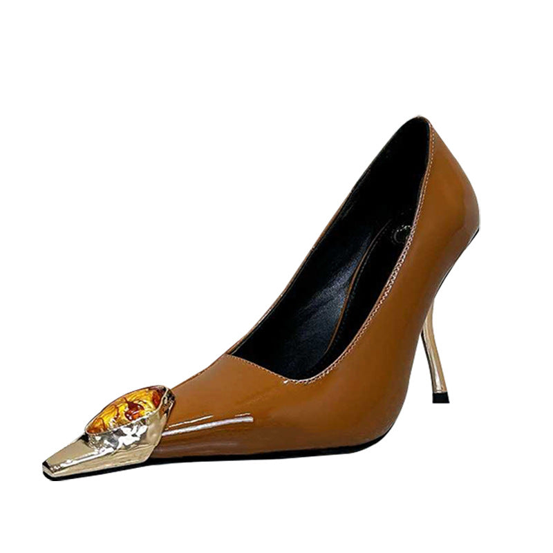These Gem Square Toe Stiletto Hollow High Heels are not your average high heels. With a platform design and heart-shaped color block, they offer both style and comfort. Elevate your look and stand out from the crowd with these unique and chic boots.
