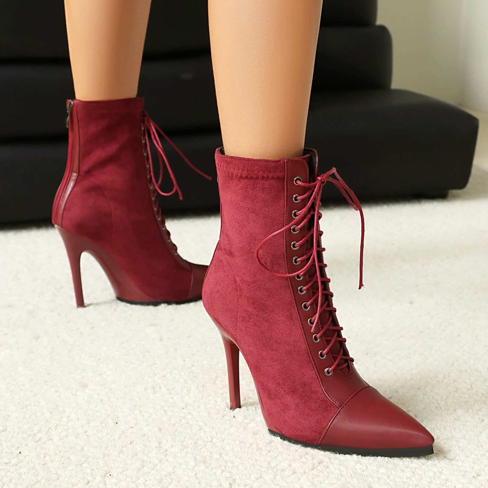 Drawstring Patchwork Short Pointed Knight Boots
