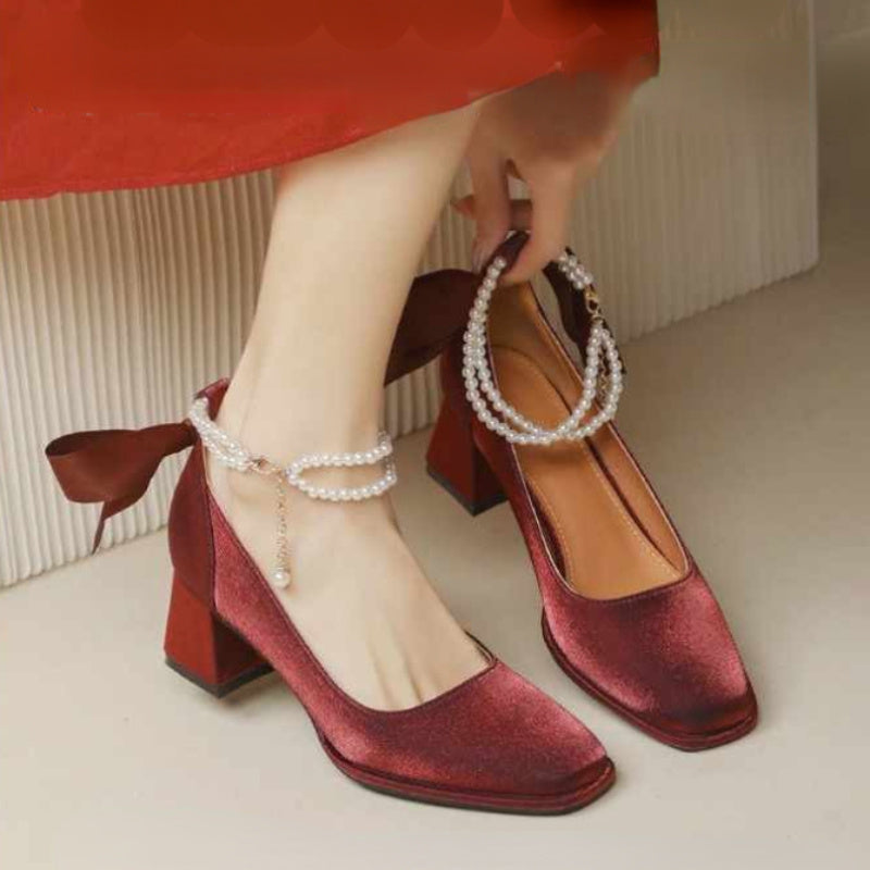 Popular elements: beaded, shallow cut, ribbon, chunky heel